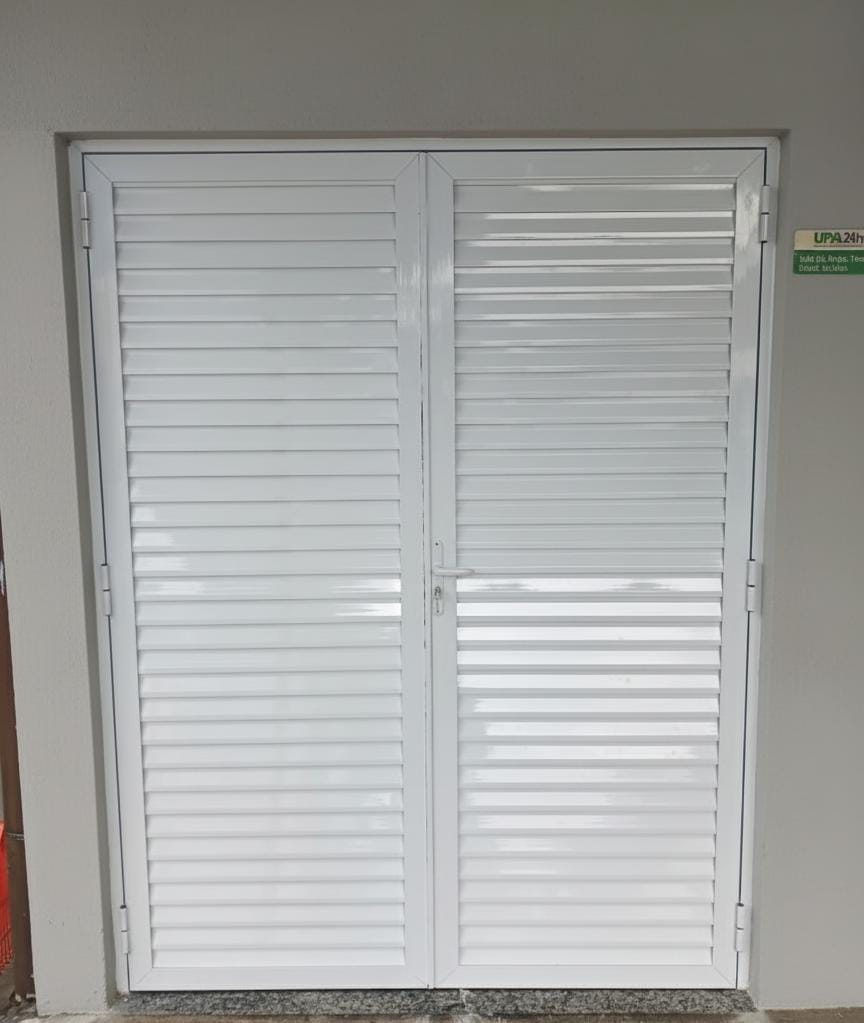 Porta de giro 2 folhas, linha Suprema, c/ paleta ventilada, acabamento de perfil na cor branco brilhante RAL9003