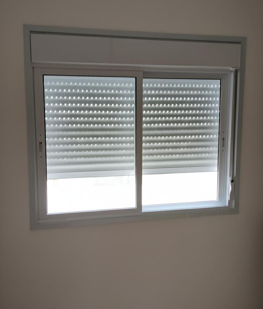 Janela c/ persiana integrada motorizada, 2 folhas linha Suprema, acabamento do perfil branco brilhante RAL9003.